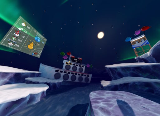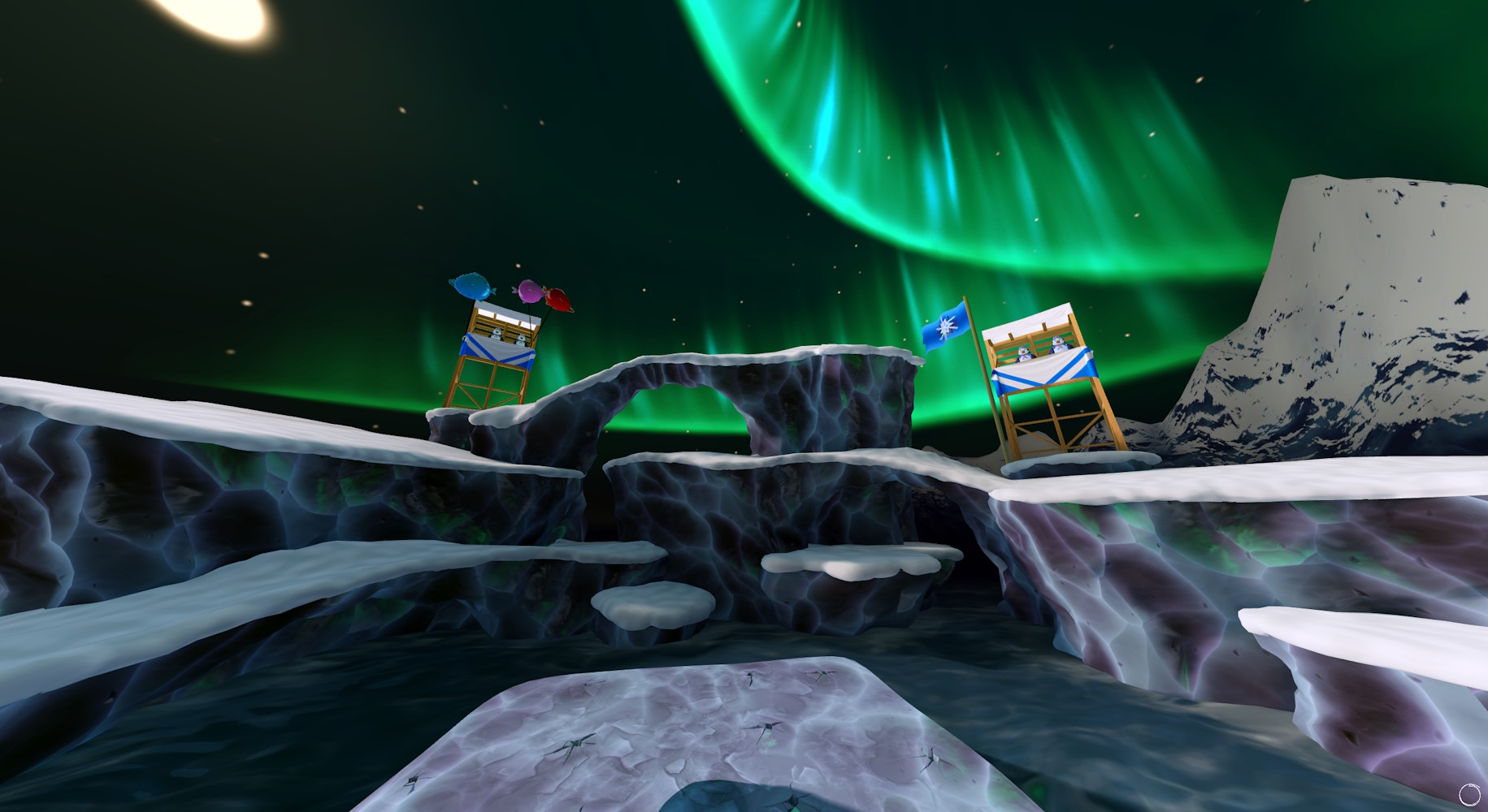 Arctic Olympics Arena lets players freely walk, dodge and aim in a fully interactive virtual Arctic setting. Line up precision shots, dodge incoming snowballs, or activate bonus effects to rack up more points. Every round brings both laughter and competition. The core of the action is the Slingshot Challenge — stand on icy platforms, keep your eyes on moving targets all around you, and fire away to climb the leaderboard.
