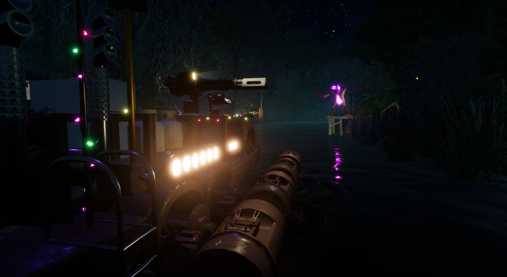 Team up with friends to protect your raft and the swamp from supernatural creatures. Armed with powerful weapons and clever strategies, you’ll face waves of enemies coming from the shoreline, water, and even the sky! In this fast-paced co-op-survival experience, you’ll need to defend your raft while working together to shoot off waves of swamp creatures! With immersive environments and intense action, The Raft VR is perfect for players looking for an exciting, short-burst survival adventure.